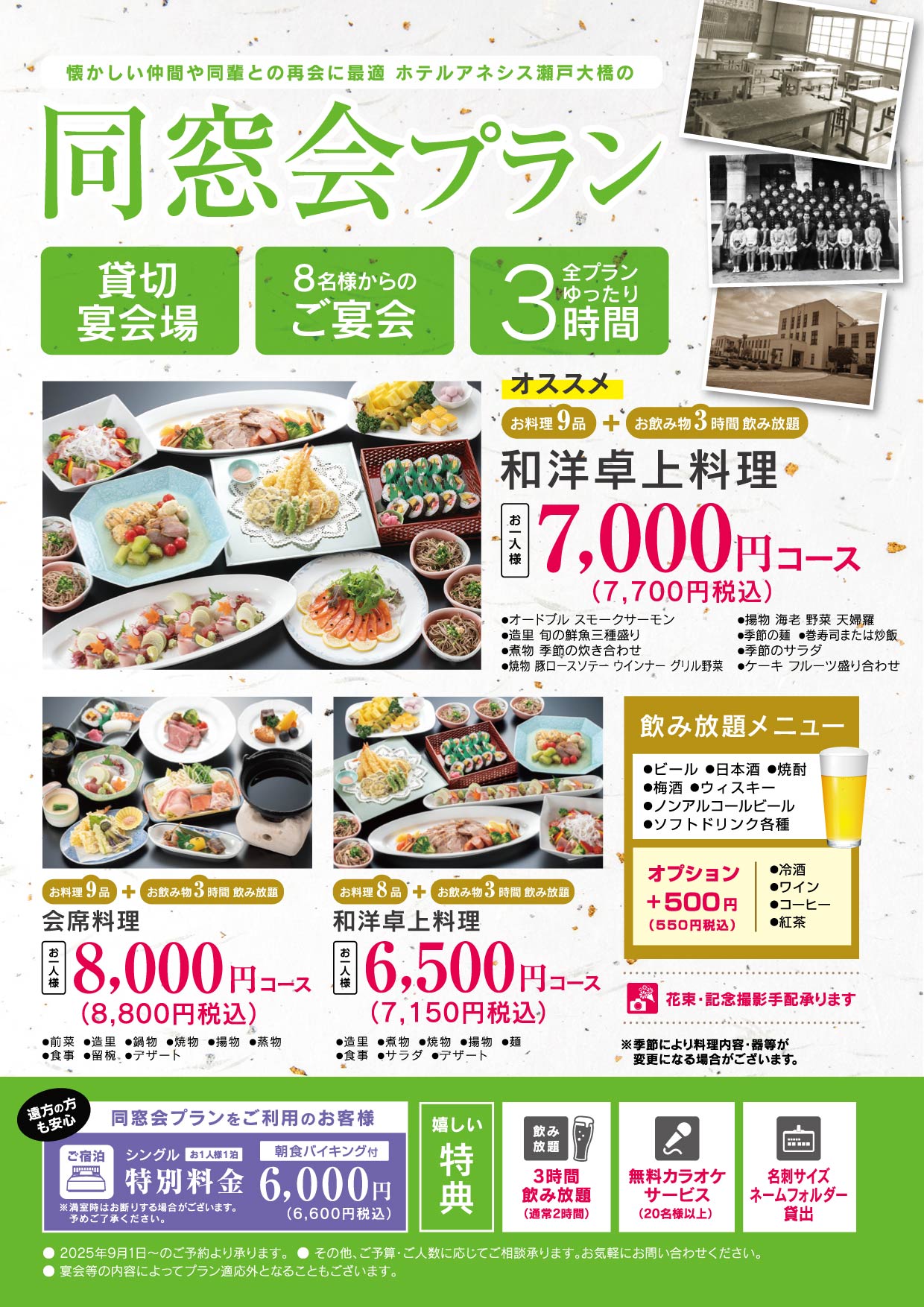 ゆったり3時間の飲み放題付き同窓会プラン。